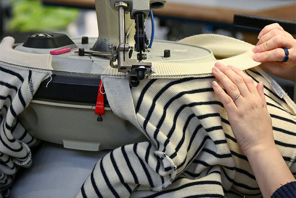 In the SAINT JAMES workshops, the art of sewing is mainly practiced by women. More than 100 seamstresses work in the clothing workshop, putting their expertise in industrial and manual haute couture at the service of the products every day.