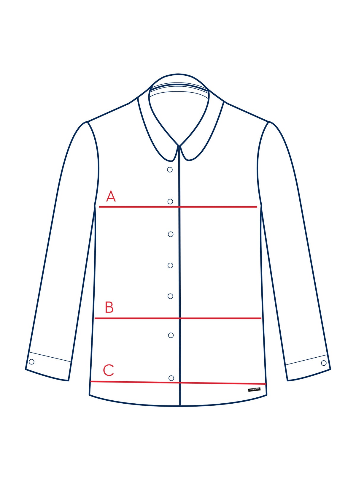 To find your ideal size, select a garment from your wardrobe of the same type, with a fit and drape that you like, and measure it while laid flat.