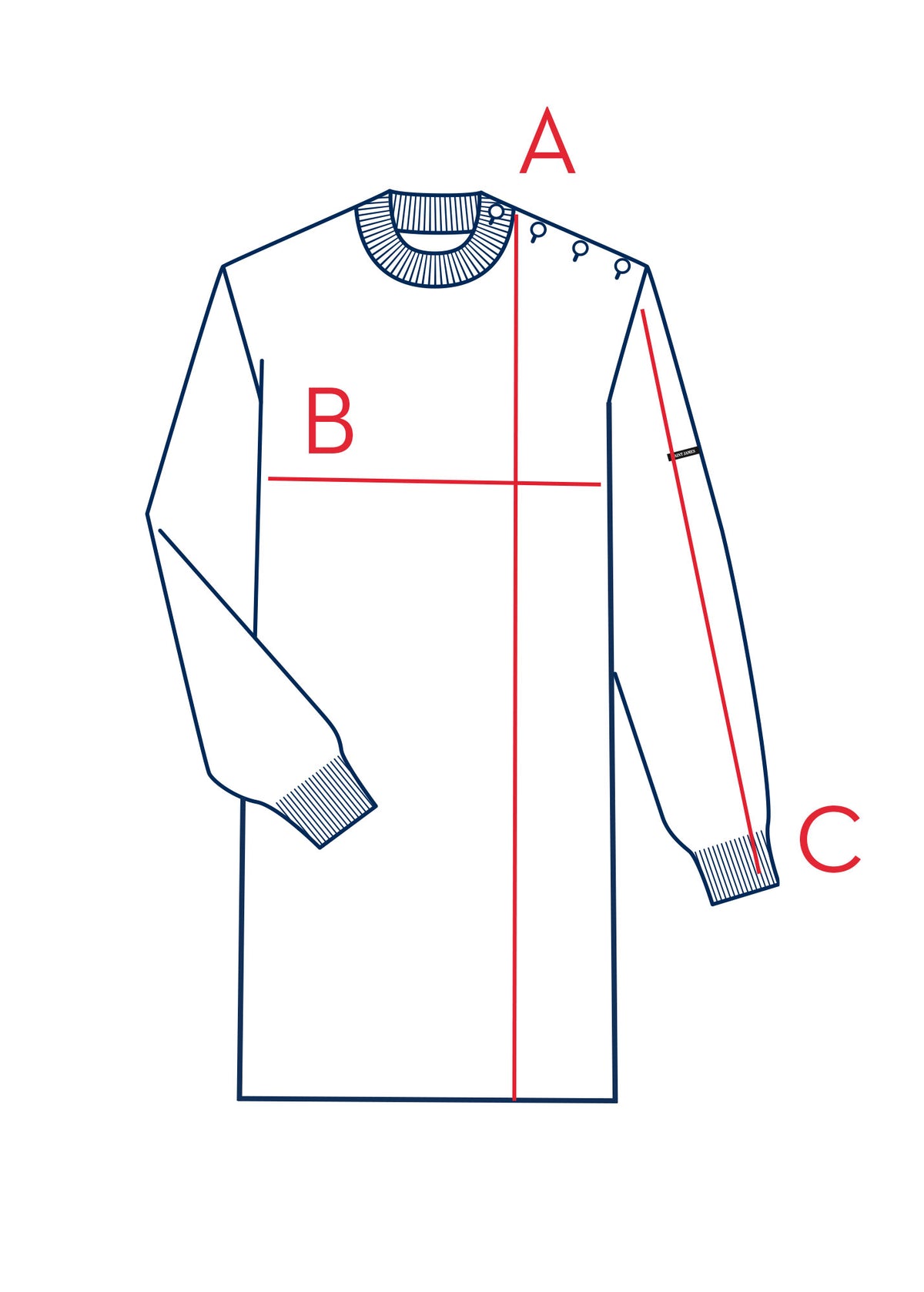 To find your ideal size, select a garment from your wardrobe of the same type, with a fit and drape that you like, and measure it while laid flat.